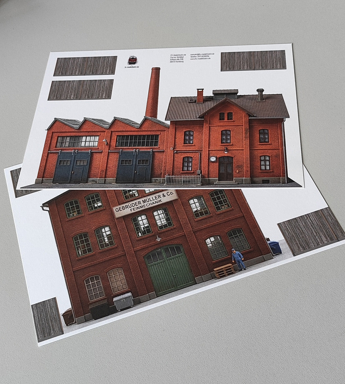 Modellbahnhintergrund 2er Set Gewerbe mit Fabrik und Metallverarbeitung Spur H0 1zu87