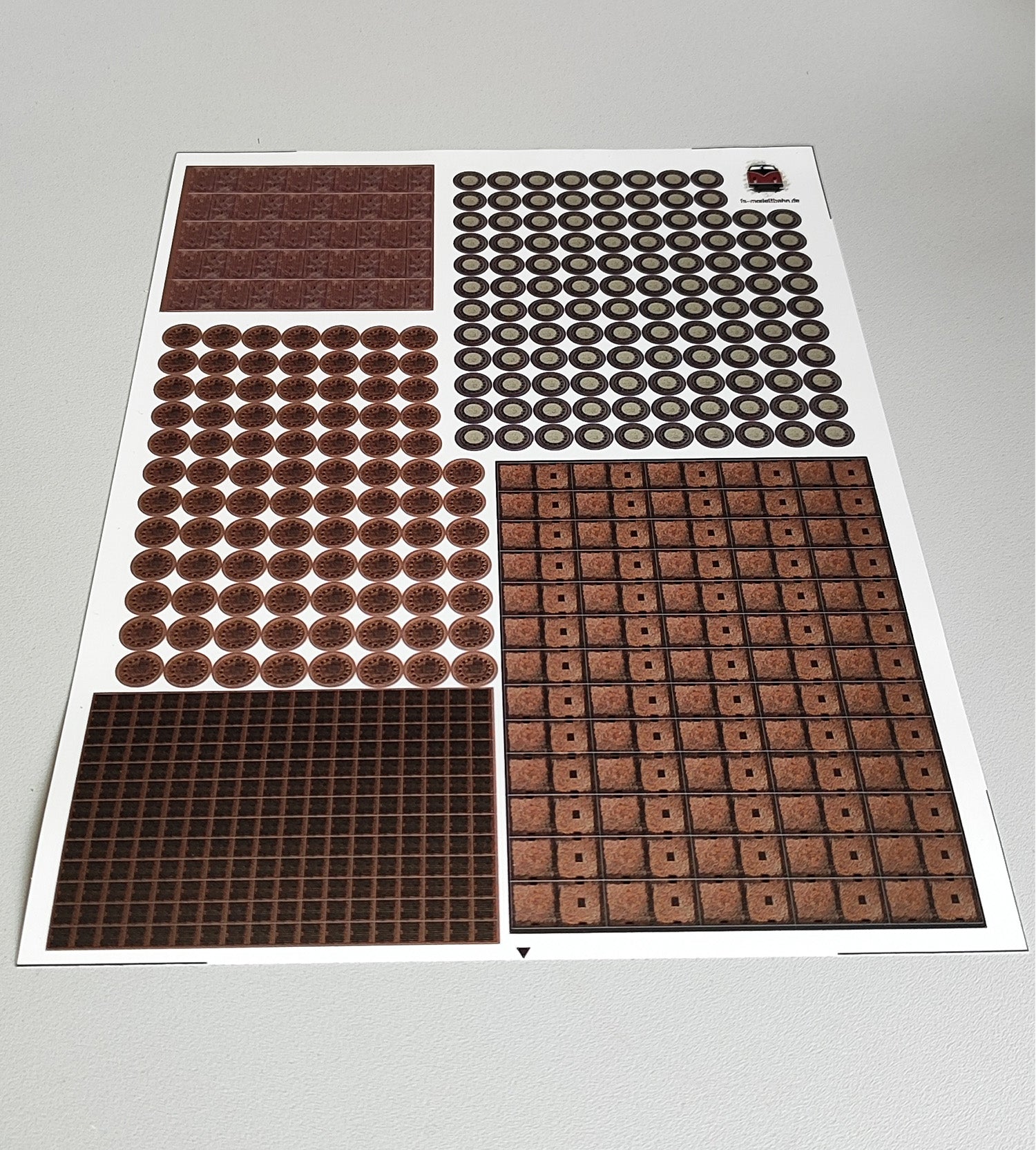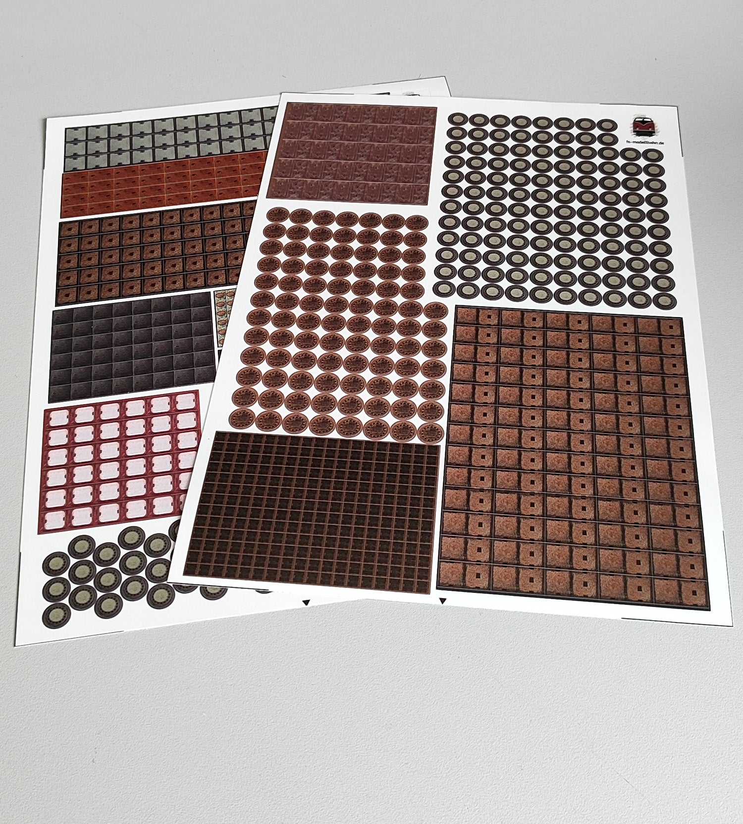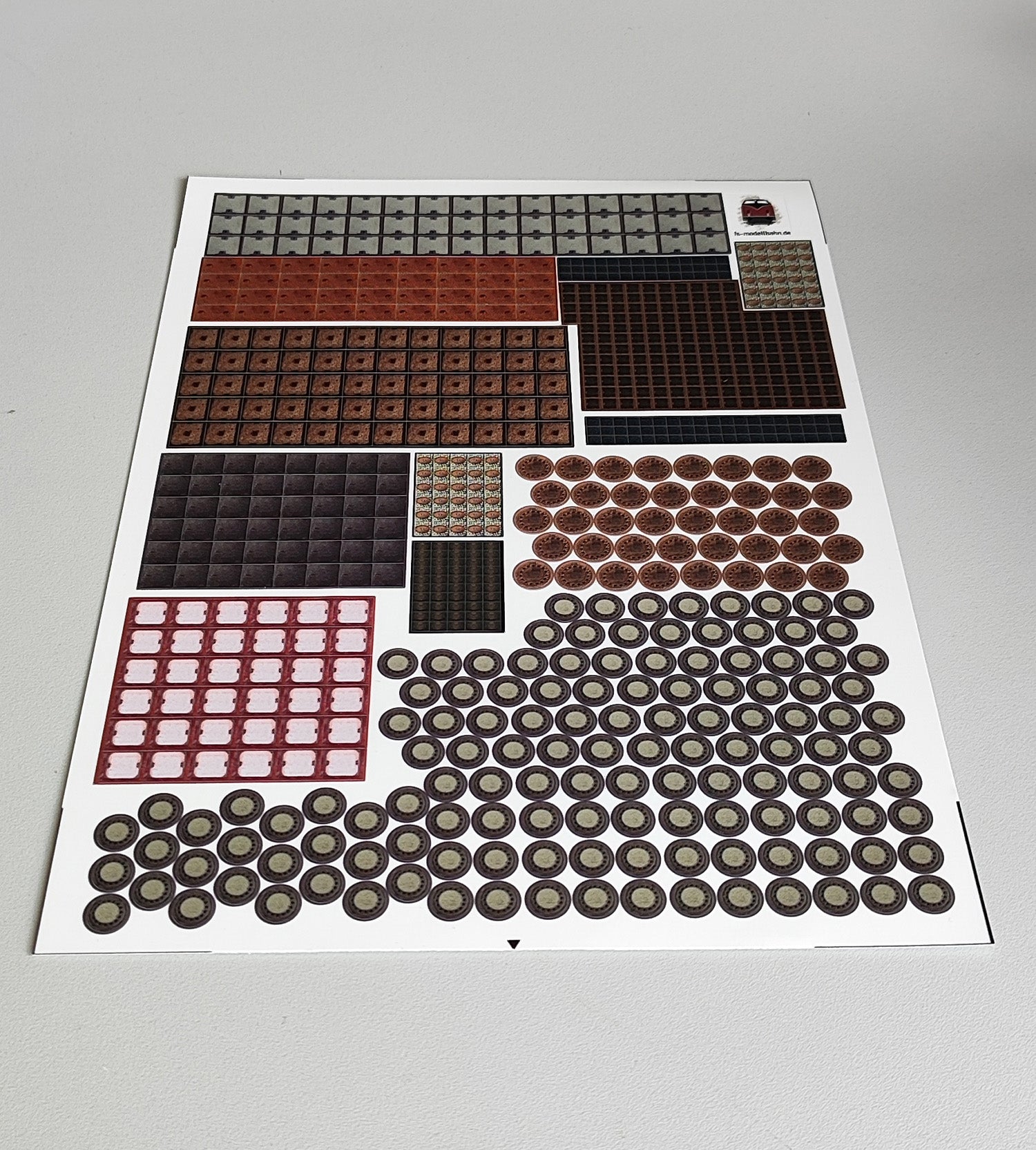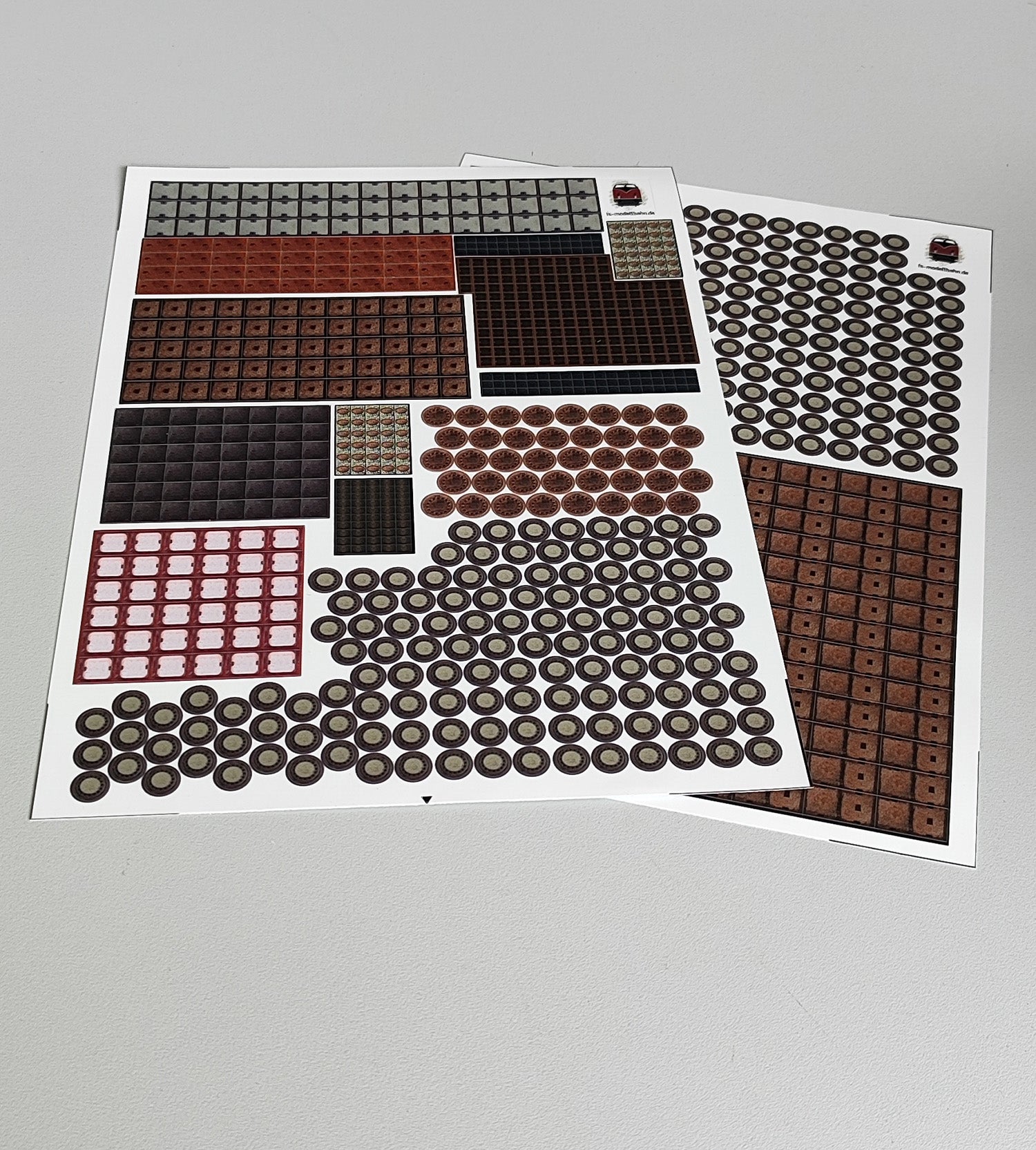 Kanal- und Gullideckel sowie diverse Schachtabdeckungen für Telefon- und Stromschächte. Die kleinen Details, die eine Gestaltung von Modellbahn und Diorama erst richtig abrunden. Auf zwei Din a4 Bögen kommen 1282 kleine Aufkleber, die alle fertig geschnitten sind. Alle Decals sind im Maßstab 1 zu 87 Spur H0. Die Aufkleber sind mattfarben laminiert.