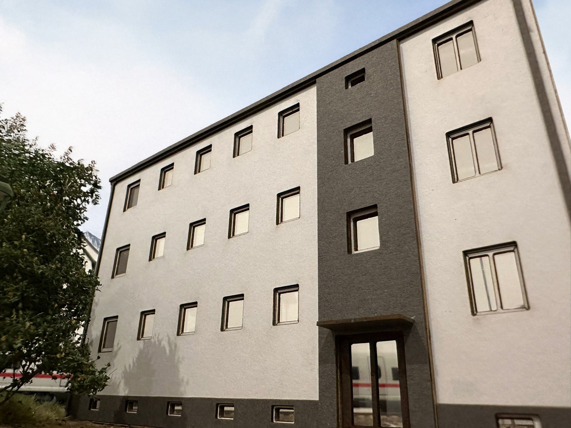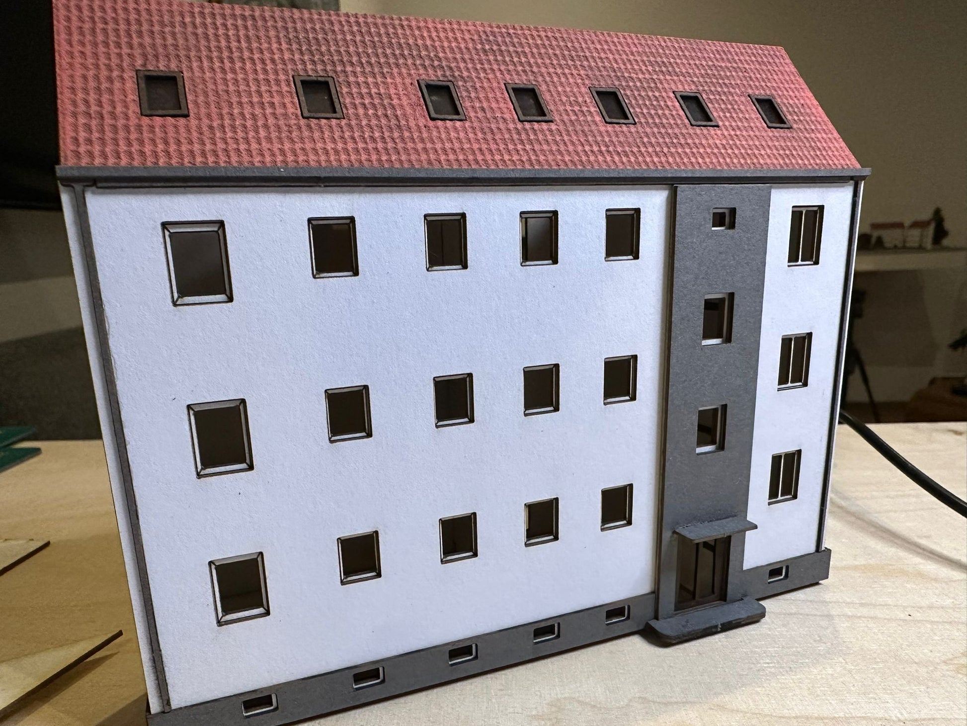 Mehrfamilienhaus als Reliefgebäude Lasercut Bausatz Spur H0 1zu87