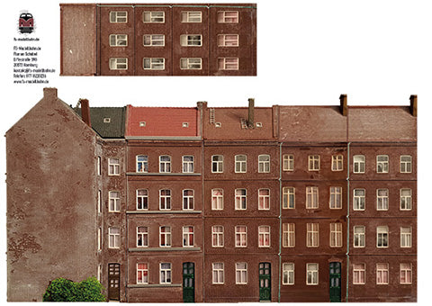 Modellbahnhintergrund 65cm Breite mit Hausbesetzung zum Kombinieren Spur TT in 1 zu 120 | FS-Modellbahn