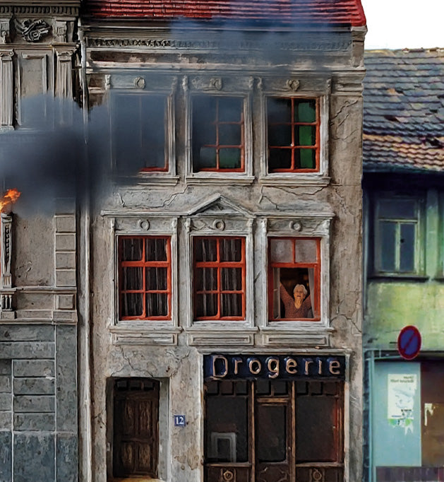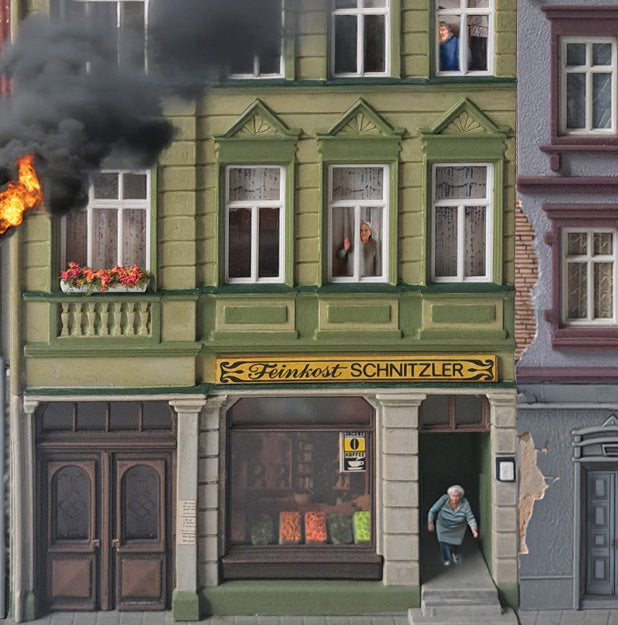 Modellbahnhintergrund Actionkulissen Gebäudebrand im Set für Spur H0 1zu87