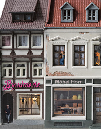 Modellbahnhintergrund brennendes Gebäude Actionkulisse Motiv 2 mit drei unterschiedlichen Gebäuden von denen eins zu brennen beginnt für eine Stadt für Spur H0 1zu87. Die Gebäude kommen auf einem Din a4 Bogen professionell gedruckt auf 250g/m² Papier. Das entspricht in etwa einer Postkartenstärke. Es lässt sich also sehr gut zuschneiden und ist dennoch sehr stabil. Dieser Modellbahnhintergrund lässt sich mit allen anderen Gebäudehintergründen aus meiner Reihe kombinieren. Die Gebäude sind zum Ausschneiden gedacht.