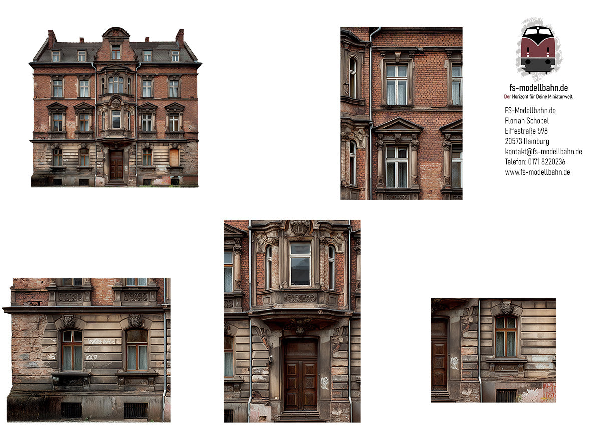 Modellbahnhintergrund Altbau mit vier Geschossen Spur H0 1zu87 zum Download