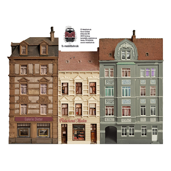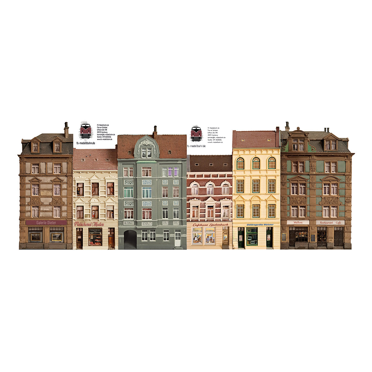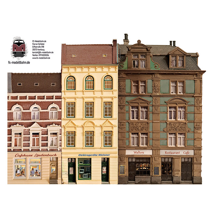 Modellbahnhintergrund Altbauten Fassadenfronten Eckmodule 2er Set Spur H0 1zu87