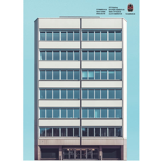 Modellbahnhintergrund Bürogebäude mit sieben Etagen Typ 1 Spur H0 1zu87
