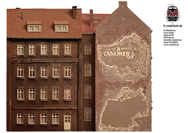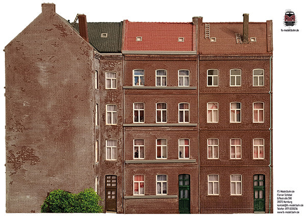 Modellbahnhintergrund Hinterhofgebäude 2er Set Spur H0 1zu87