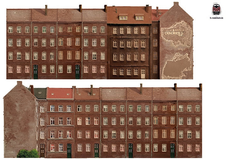 Modellbahnhintergrund in Spur N in 1 zu 160 in 51cm Breite Hinterhofgebäude | FS-Modellbahn